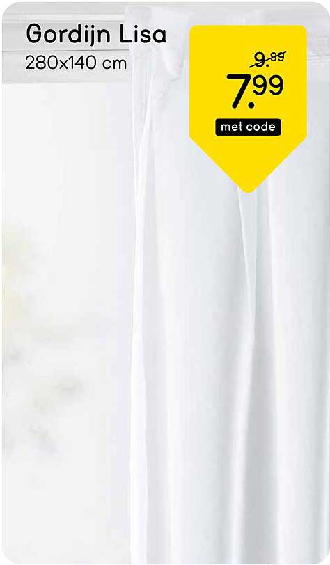 Bekijk nu de Gordijn Lisa aanbieding in de Leen Bakker folder. Deze aanbieding is geldig van 29-05-2025 tot en met 01-06-2025.
