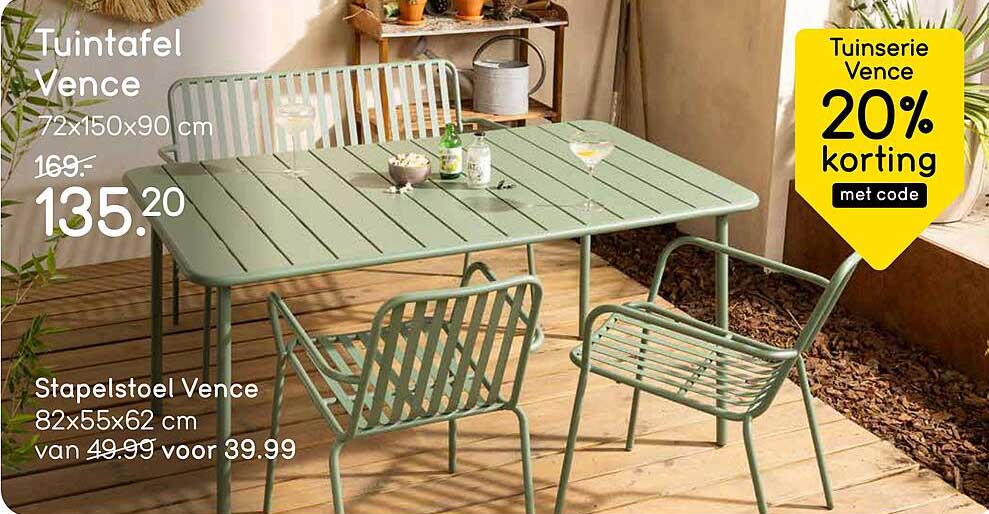 Bekijk nu de Tuinstafel Vence aanbieding in de Leen Bakker folder. Deze aanbieding is geldig van 29-05-2025 tot en met 01-06-2025.