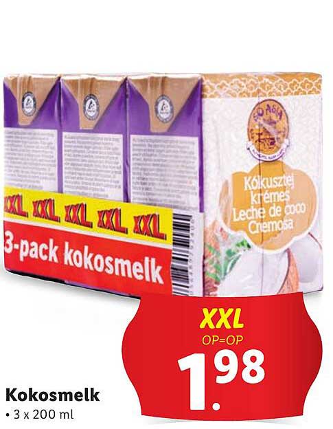Bekijk de 3-Pack Kokosmelk aanbieding bij Lidl! Deze fantastische aanbieding is nu beschikbaar in de nieuwste Lidl folder. Profiteer van deze kans en bespaar flink op je aankoop.