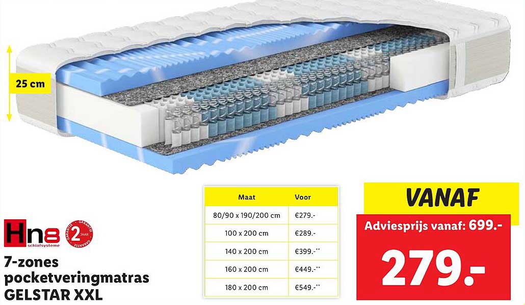 Bekijk nu de 7-zones pocketveringmatras GELSTAR XXL aanbieding in de Lidl folder. Deze aanbieding is geldig van 17-03-2025 tot en met 23-03-2025.