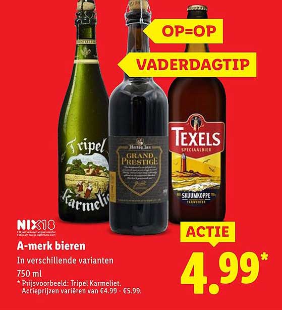 De prijs van €4,99 voor deze A-merk bieren is een echte deal vergeleken met de reguliere prijzen, die doorgaans hoger liggen. Dit maakt het niet alleen aantrekkelijk om voor jezelf in te slaan, maar ook om als cadeau te geven. Maak je Vaderdag extra speciaal met deze geselecteerde bieren, en bespaar tegelijkertijd een flink bedrag!