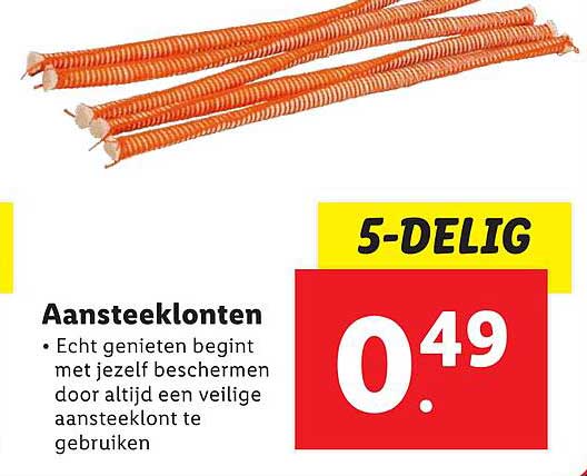 Ontdek de geweldige Aansteeklonten aanbieding in de nieuwste Lidl folder. Naast deze aanbieding vind je nog veel meer aantrekkelijke kortingen. Je kunt de Aansteeklonten eenvoudig online bestellen via de Lidl website of kopen in een winkel bij jou in de buurt.
