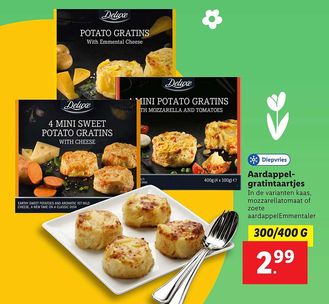 Bekijk nu de Aardappel-gratintaartjes aanbieding in de Lidl folder. Deze aanbieding is geldig van 07-04-2025 tot en met 13-04-2025.