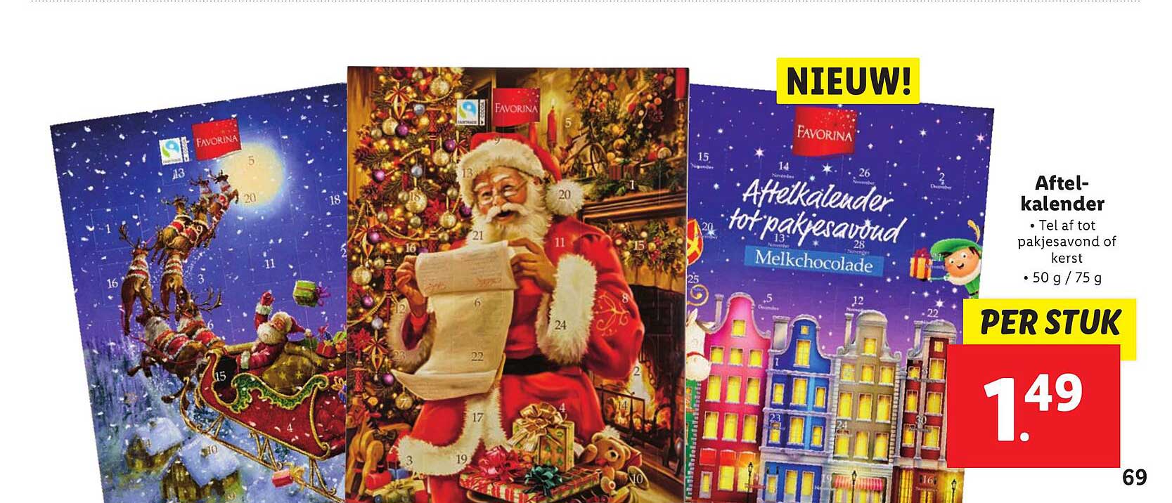 Bekijk de Aftel-Kalender Tot Pakjesavond Melkchocolade aanbieding bij Lidl! Deze fantastische aanbieding is nu beschikbaar in de nieuwste Lidl folder. Profiteer van deze kans en bespaar flink op je aankoop.