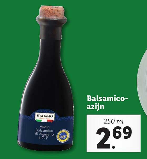 Bekijk de Balsamicoazijn aanbieding bij Lidl! Deze fantastische aanbieding is nu beschikbaar in de nieuwste Lidl folder. Profiteer van deze kans en bespaar flink op je aankoop.