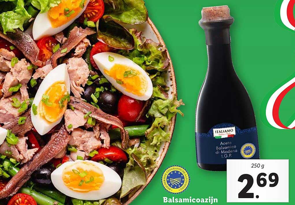 Bekijk de Balsamicoazijn aanbieding bij Lidl! Deze fantastische aanbieding is nu beschikbaar in de nieuwste Lidl folder. Profiteer van deze kans en bespaar flink op je aankoop.