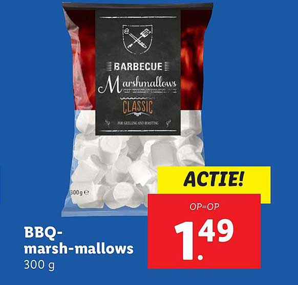 Bekijk nu de BBQ-marsh-mallow 300 g aanbieding in de Lidl folder. Deze aanbieding is geldig van 26-05-2025 tot en met 01-06-2025.