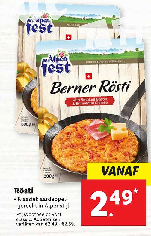 Ontdek de geweldige Berner Rösti aanbieding in de nieuwste Lidl folder. Naast deze aanbieding vind je nog veel meer aantrekkelijke kortingen. Je kunt de Berner Rösti eenvoudig online bestellen via de Lidl website of kopen in een winkel bij jou in de buurt.