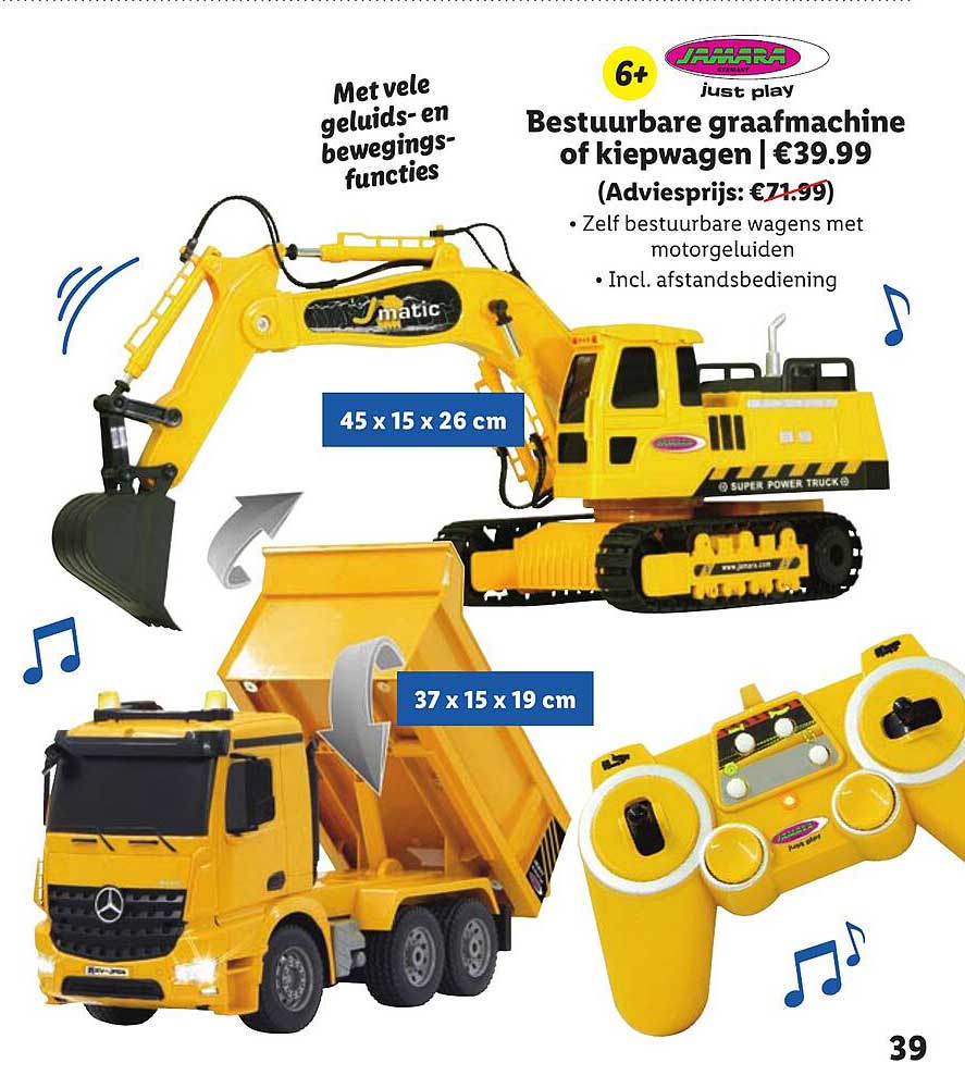 Bekijk de Bestuurbare Graafmachine Of Kiepwagen aanbieding bij Lidl! Deze fantastische aanbieding is nu beschikbaar in de nieuwste Lidl folder. Profiteer van deze kans en bespaar flink op je aankoop.