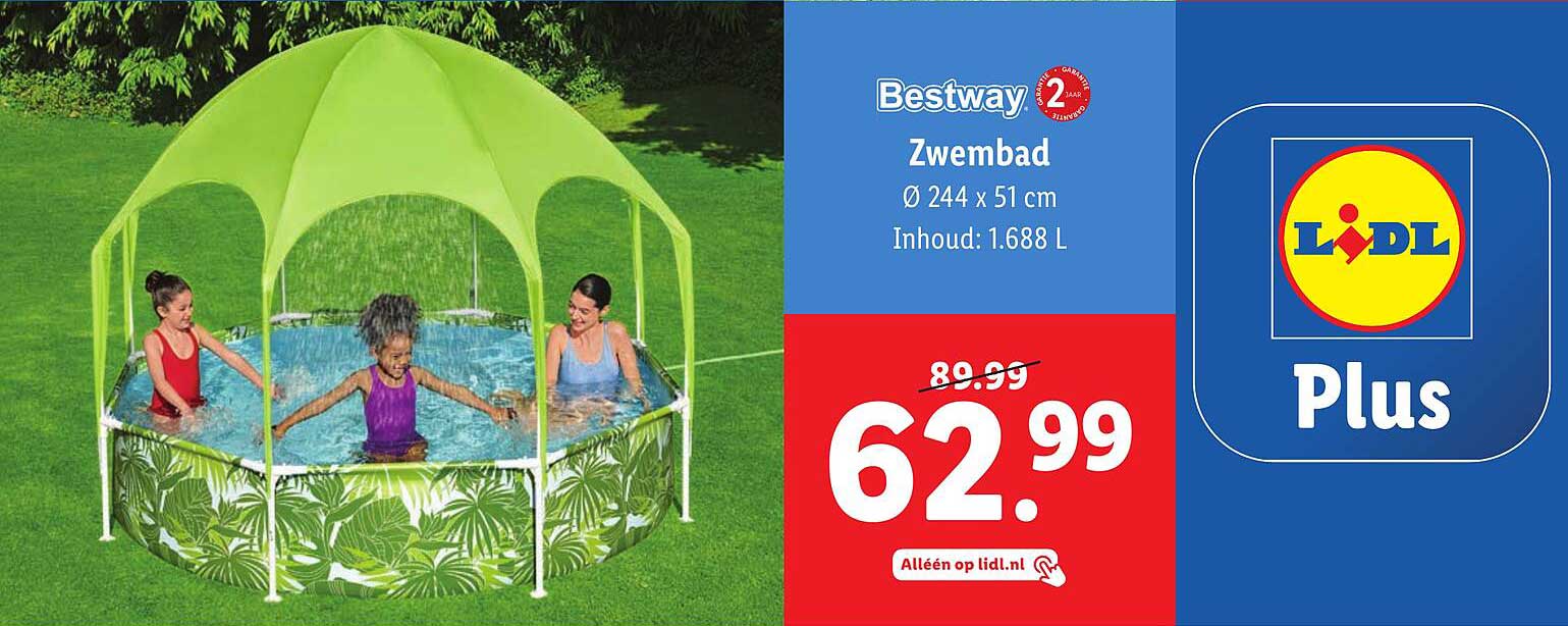 Ontdek de geweldige Bestway Zwembad aanbieding in de nieuwste Lidl folder. Naast deze aanbieding vind je nog veel meer aantrekkelijke kortingen. Je kunt de Bestway Zwembad eenvoudig online bestellen via de Lidl website of kopen in een winkel bij jou in de buurt.