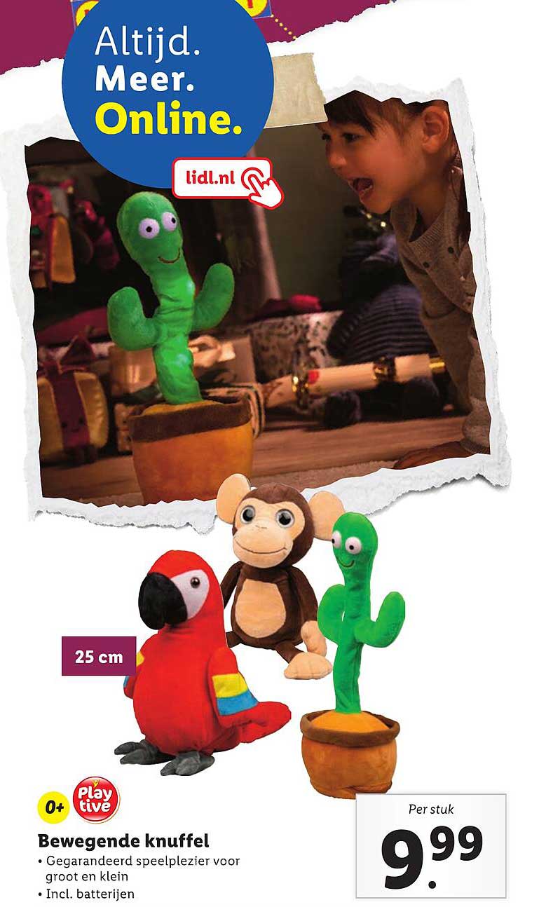 Bekijk nu de Bewegende knuffel aanbieding in de Lidl folder. Deze aanbieding is geldig van 04-11-2024 tot en met 10-11-2024.