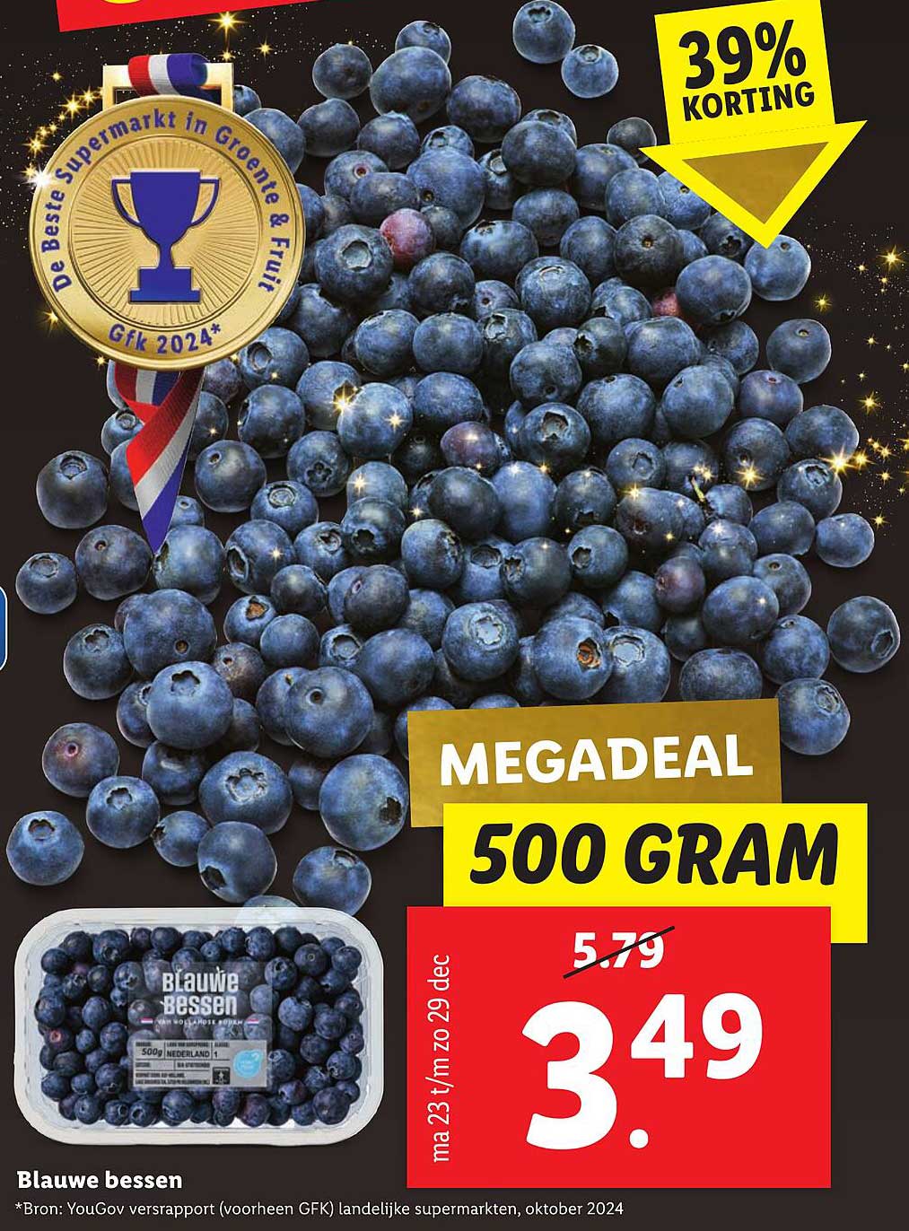 Bekijk de Blauwe Bessen aanbieding bij Lidl! Deze fantastische aanbieding is nu beschikbaar in de nieuwste Lidl folder. Profiteer van deze kans en bespaar flink op je aankoop.