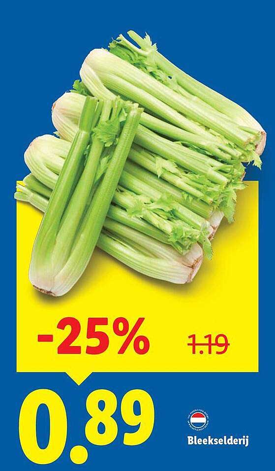Bekijk nu de Bleekselderij aanbieding in de Lidl folder. Deze aanbieding is geldig van 25-09-2025 tot en met 05-10-2025.