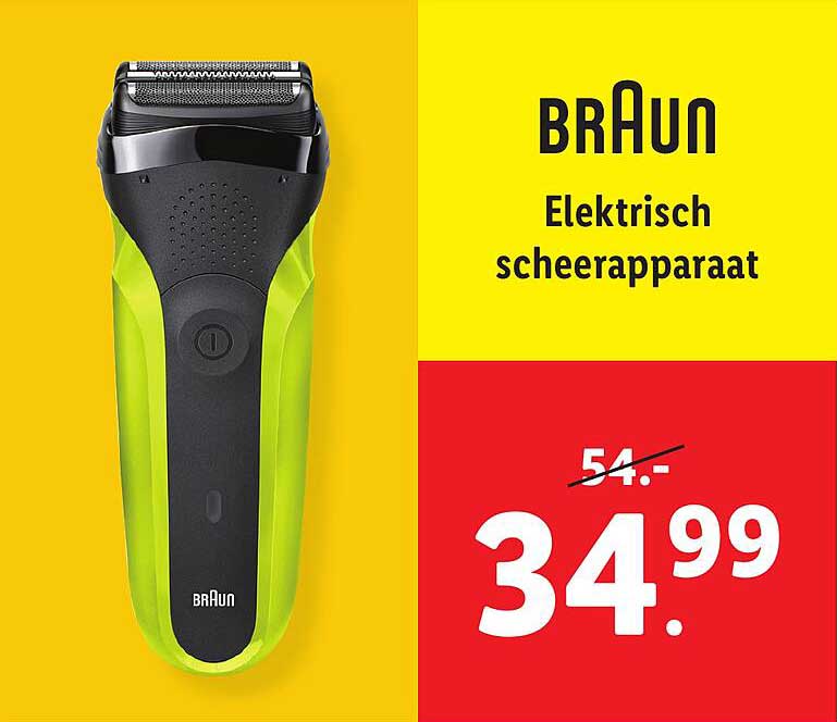 Bekijk de Braun Elektrisch Scheerapparaat aanbieding bij Lidl! Deze fantastische aanbieding is nu beschikbaar in de nieuwste Lidl folder. Profiteer van deze kans en bespaar flink op je aankoop.