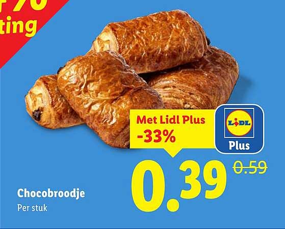 Normaal kost een Chocobroodje €0,59, maar met de huidige aanbieding betaal je slechts €0,39! Dit betekent een korting van maar liefst 33%. Dit maakt het niet alleen aantrekkelijk om te kopen, maar ook een slimme keuze voor je portemonnee. Vergeet niet dat dit een tijdelijk aanbod is, dus profiteer snel van deze deal!