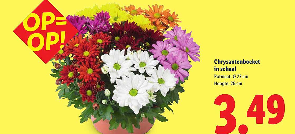 Bekijk nu de Chrysantenboeket in schaal aanbieding in de Lidl folder. Deze aanbieding is geldig van 11-08-2025 tot en met 17-08-2025.
