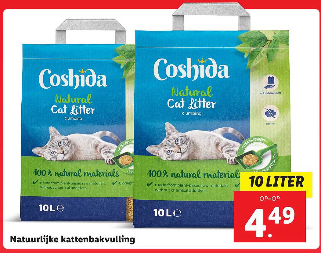 Bekijk de Coshida Natural Cat Litter aanbieding bij Lidl! Deze fantastische aanbieding is nu beschikbaar in de nieuwste Lidl folder. Profiteer van deze kans en bespaar flink op je aankoop.