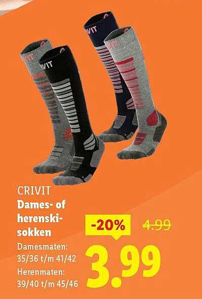 Bekijk nu de CRIVIT Dames- of herenski-sokken aanbieding in de Lidl folder. Deze aanbieding is geldig van 20-10-2025 tot en met 26-10-2025.