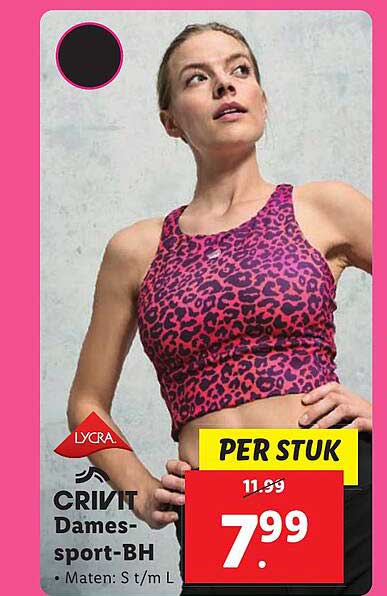 Bekijk de Crivit Dames-Sport-Bh aanbieding bij Lidl! Deze fantastische aanbieding is nu beschikbaar in de nieuwste Lidl folder. Profiteer van deze kans en bespaar flink op je aankoop.