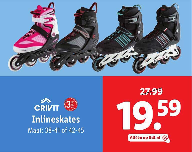 Bekijk de Crivit Inlineskates aanbieding bij Lidl! Deze fantastische aanbieding is nu beschikbaar in de nieuwste Lidl folder. Profiteer van deze kans en bespaar flink op je aankoop.