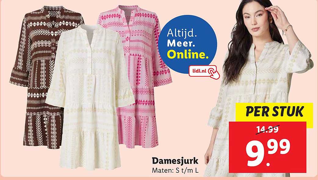 Bekijk nu de Damesjurk aanbieding in de Lidl folder. Deze aanbieding is geldig van 26-05-2025 tot en met 01-06-2025.