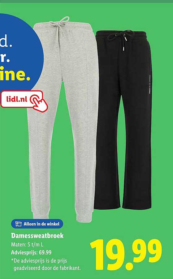Bekijk nu de Damessweatbroek aanbieding in de Lidl folder. Deze aanbieding is geldig van 08-09-2025 tot en met 14-09-2025.