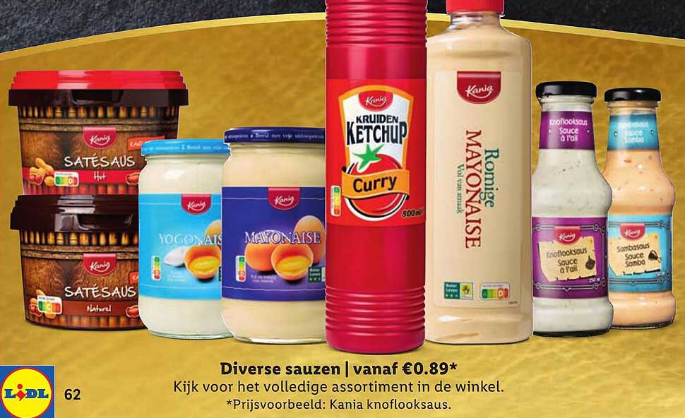 Bekijk de Diverse Sauzen aanbieding bij Lidl! Deze fantastische aanbieding is nu beschikbaar in de nieuwste Lidl folder. Profiteer van deze kans en bespaar flink op je aankoop.