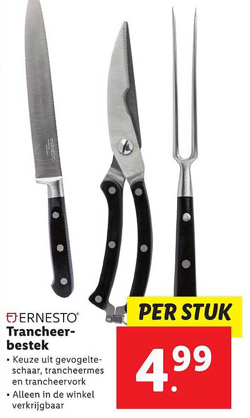 Bekijk de Ernesto Trancheer-Bestek aanbieding bij Lidl! Deze fantastische aanbieding is nu beschikbaar in de nieuwste Lidl folder. Profiteer van deze kans en bespaar flink op je aankoop.