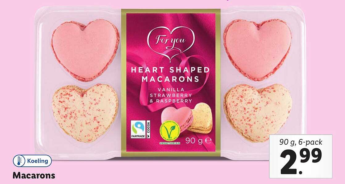 Bekijk de Heart Shaped Macarons aanbieding bij Lidl! Deze fantastische aanbieding is nu beschikbaar in de nieuwste Lidl folder. Profiteer van deze kans en bespaar flink op je aankoop.