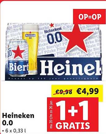Ontdek de geweldige Heineken 0.0 aanbieding in de nieuwste Lidl folder. Naast deze aanbieding vind je nog veel meer aantrekkelijke kortingen. Je kunt de Heineken 0.0 eenvoudig online bestellen via de Lidl website of kopen in een winkel bij jou in de buurt.