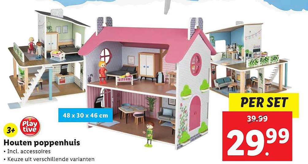 Ontdek de geweldige Houten Poppenhuis aanbieding in de nieuwste Lidl folder. Naast deze aanbieding vind je nog veel meer aantrekkelijke kortingen. Je kunt de Houten Poppenhuis eenvoudig online bestellen via de Lidl website of kopen in een winkel bij jou in de buurt.