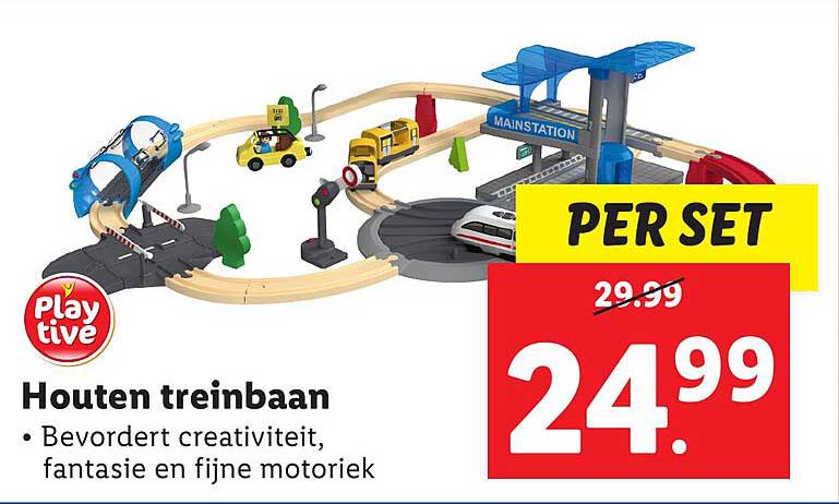 Bekijk de Houten Treinbaan aanbieding bij Lidl! Deze fantastische aanbieding is nu beschikbaar in de nieuwste Lidl folder. Profiteer van deze kans en bespaar flink op je aankoop.