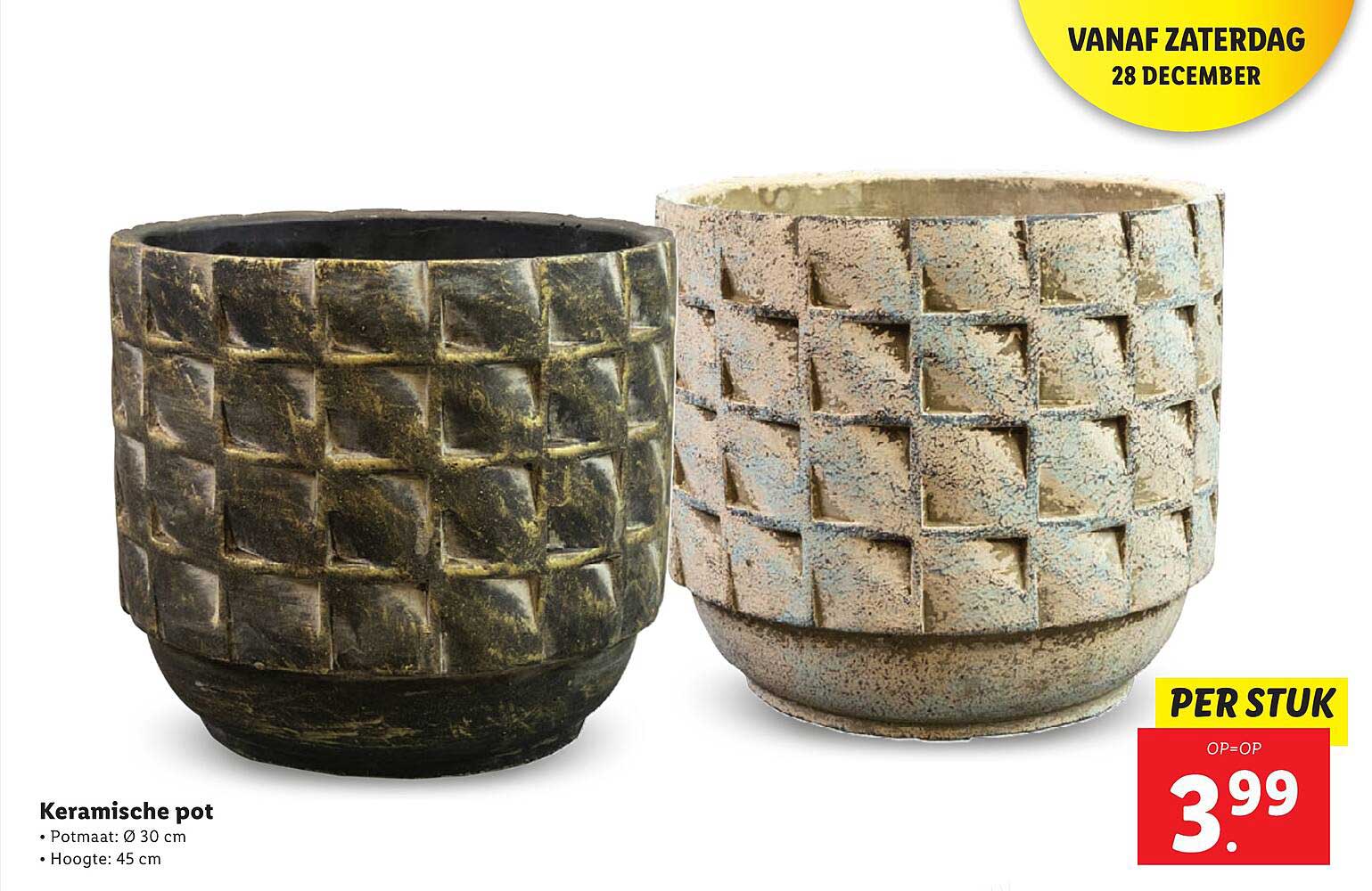 Bekijk nu de Keramische pot aanbieding in de Lidl folder. Deze aanbieding is geldig van 23-12-2024 tot en met 01-01-2025.