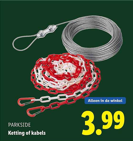 Bekijk nu de Ketting of kabels aanbieding in de Lidl folder. Deze aanbieding is geldig van 04-08-2025 tot en met 10-08-2025.