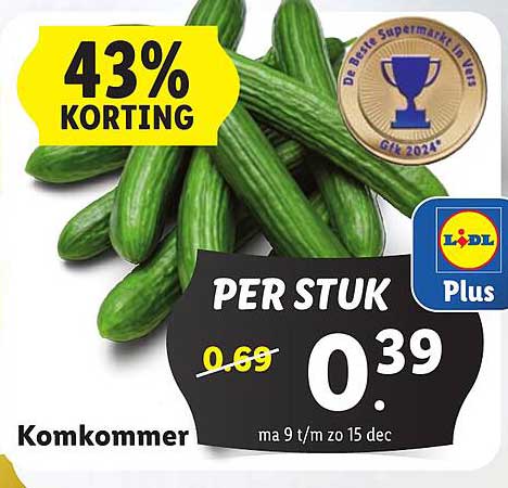 Bekijk de Komkommer aanbieding bij Lidl! Deze fantastische aanbieding is nu beschikbaar in de nieuwste Lidl folder. Profiteer van deze kans en bespaar flink op je aankoop.