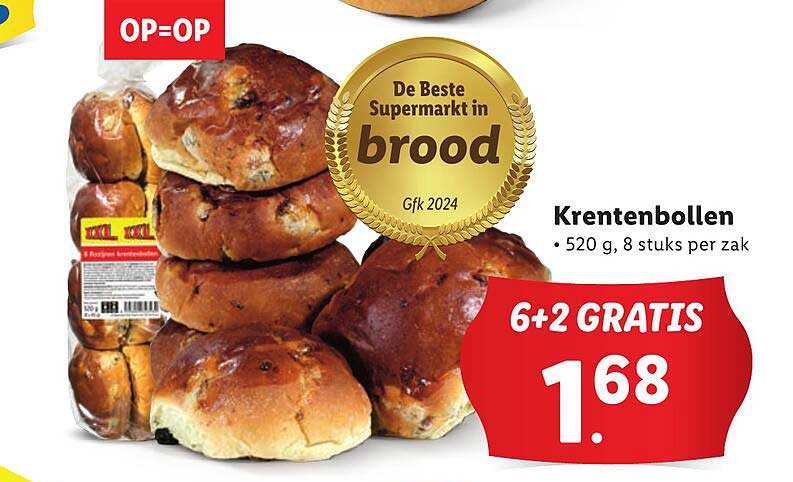 Bekijk nu de Krentebollen aanbieding in de Lidl folder. Deze aanbieding is geldig van 04-11-2024 tot en met 10-11-2024.