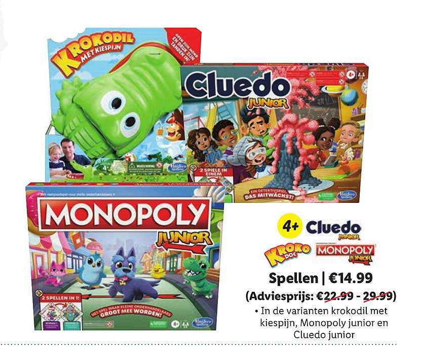 Krokodil Met Kiespijn, Cluedo Junior, Monopoly Junior aanbieding bij Lidl