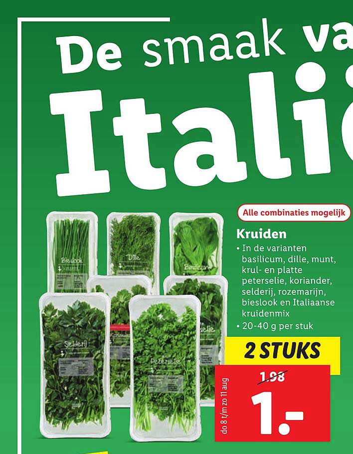 Bekijk nu de Kruiden aanbieding in de Lidl folder. Deze aanbieding is geldig van 05-08-2024 tot en met 11-08-2024.
