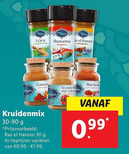 Bekijk de Kruidenmix aanbieding bij Lidl! Deze fantastische aanbieding is nu beschikbaar in de nieuwste Lidl folder. Profiteer van deze kans en bespaar flink op je aankoop.