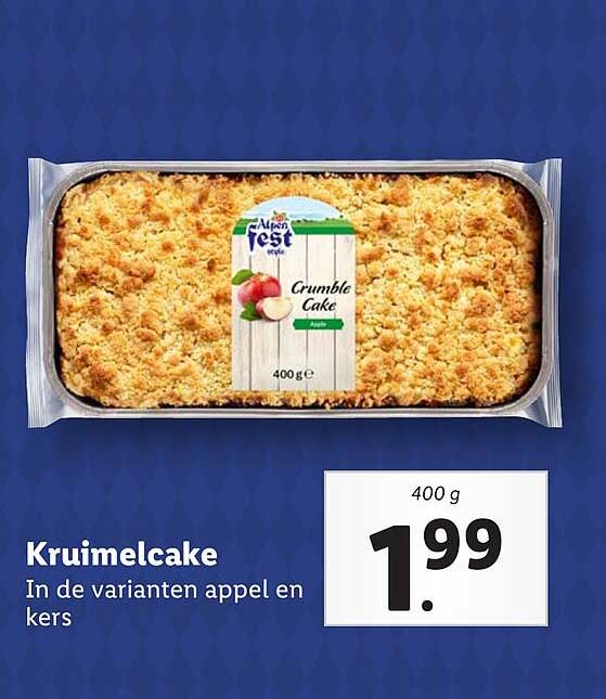 Bekijk nu de Kruimelcake aanbieding in de Lidl folder. Deze aanbieding is geldig van 28-04-2025 tot en met 04-05-2025.