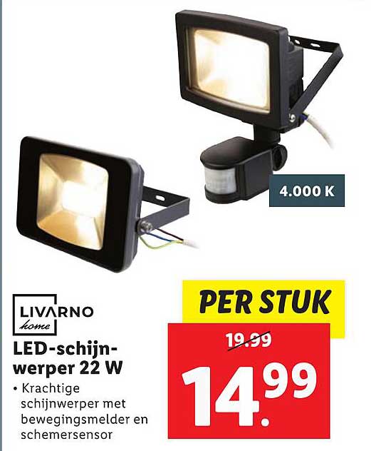 Bekijk de Led-Schijnwerper 22 W aanbieding bij Lidl! Deze fantastische aanbieding is nu beschikbaar in de nieuwste Lidl folder. Profiteer van deze kans en bespaar flink op je aankoop.
