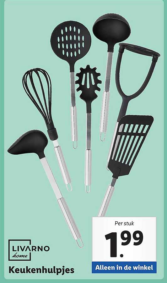 Bekijk de Livarno Home Keukenhulpjes aanbieding bij Lidl! Deze fantastische aanbieding is nu beschikbaar in de nieuwste Lidl folder. Profiteer van deze kans en bespaar flink op je aankoop.