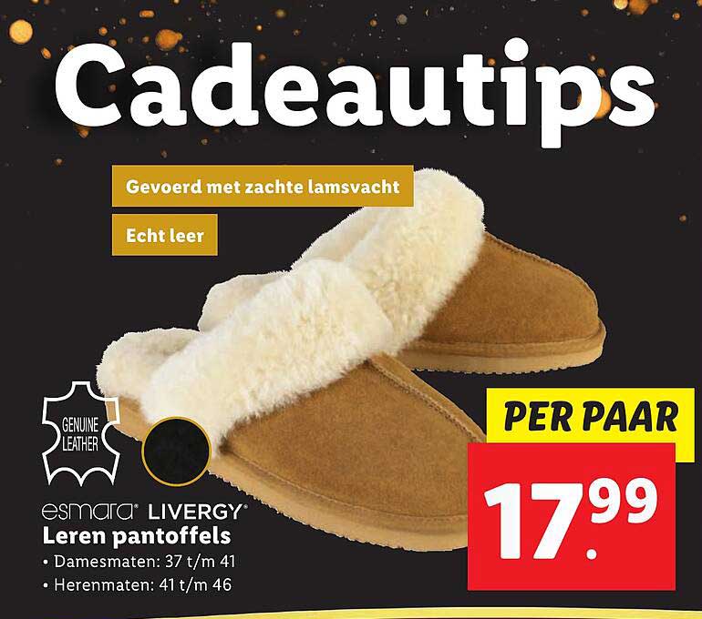 Bekijk de Livergy Leren Pantoffels aanbieding bij Lidl! Deze fantastische aanbieding is nu beschikbaar in de nieuwste Lidl folder. Profiteer van deze kans en bespaar flink op je aankoop.