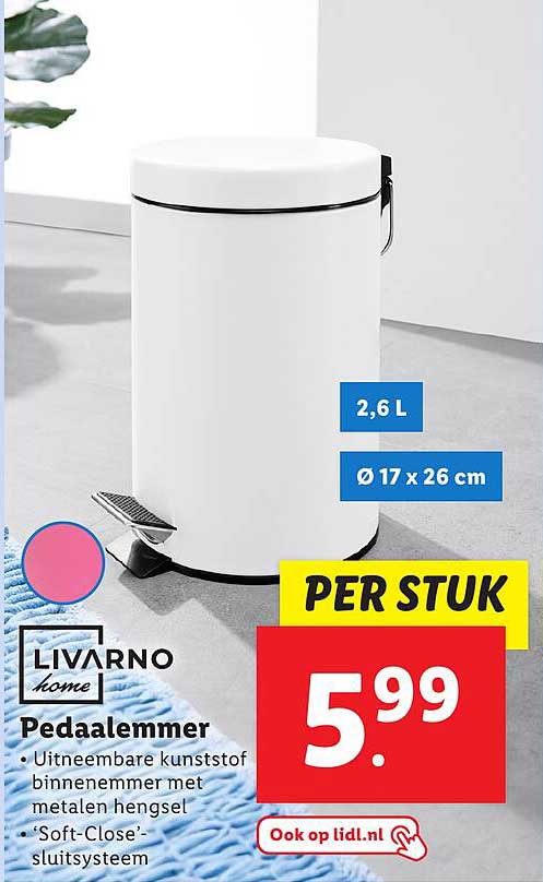 Bekijk de Livorno Home Pedaalemmer aanbieding bij Lidl! Deze fantastische aanbieding is nu beschikbaar in de nieuwste Lidl folder. Profiteer van deze kans en bespaar flink op je aankoop.