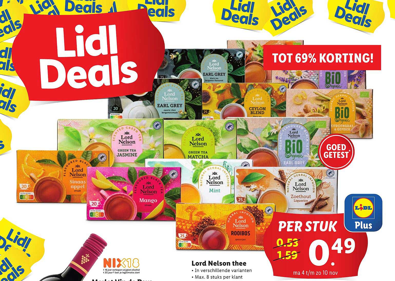 Bekijk de Lord Nelson Thee aanbieding bij Lidl! Deze fantastische aanbieding is nu beschikbaar in de nieuwste Lidl folder. Profiteer van deze kans en bespaar flink op je aankoop.