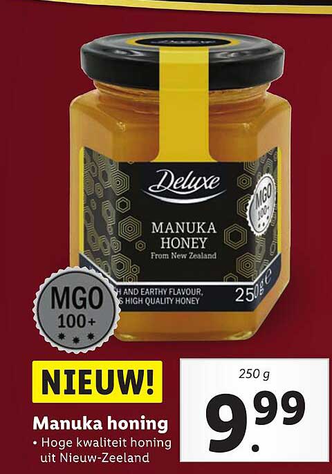 Bekijk de Manuka Honing aanbieding bij Lidl! Deze fantastische aanbieding is nu beschikbaar in de nieuwste Lidl folder. Profiteer van deze kans en bespaar flink op je aankoop.