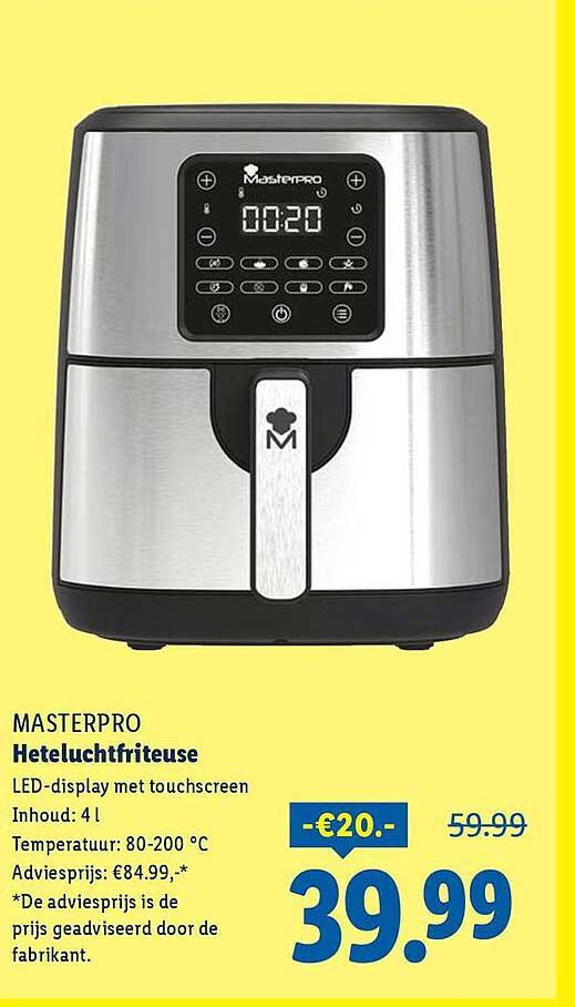 Bekijk nu de MASTERPRO Heteluchtfriteuse aanbieding in de Lidl folder. Deze aanbieding is geldig van 02-10-2025 tot en met 12-10-2025.