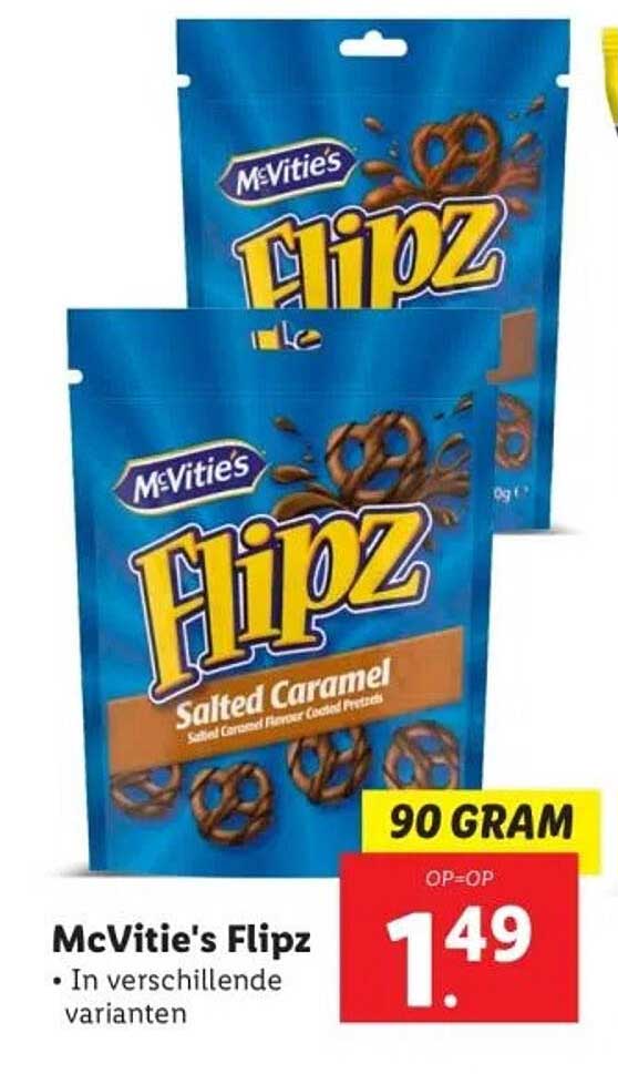 Bekijk de Mcvitie's Flipz Salted Caramel aanbieding bij Lidl! Deze fantastische aanbieding is nu beschikbaar in de nieuwste Lidl folder. Profiteer van deze kans en bespaar flink op je aankoop.