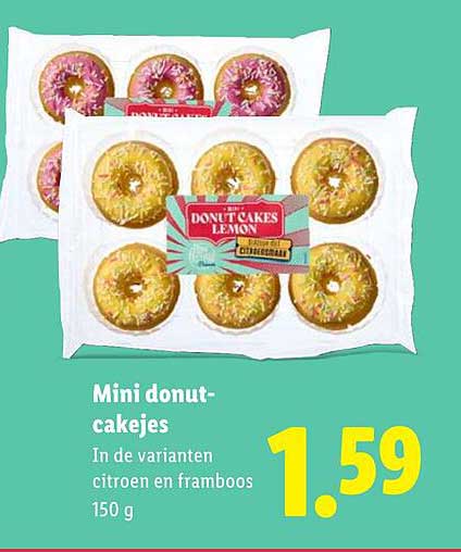 Heb je zin in iets zoets om je dag op te vrolijken? Kijk dan niet verder! Op deze pagina vind je een geweldige aanbieding voor de mini donut-cakejes van Lidl. Deze heerlijke traktaties zijn perfect voor bij de koffie of als snack voor tussendoor. Gemaakt in de verrukkelijke smaken citroen en framboos, zijn ze een waar genot voor je smaakpapillen. Met een aantrekkelijke prijs tijdens deze actieperiode, kun je jezelf en je geliefden verwennen zonder je portemonnee pijn te doen!