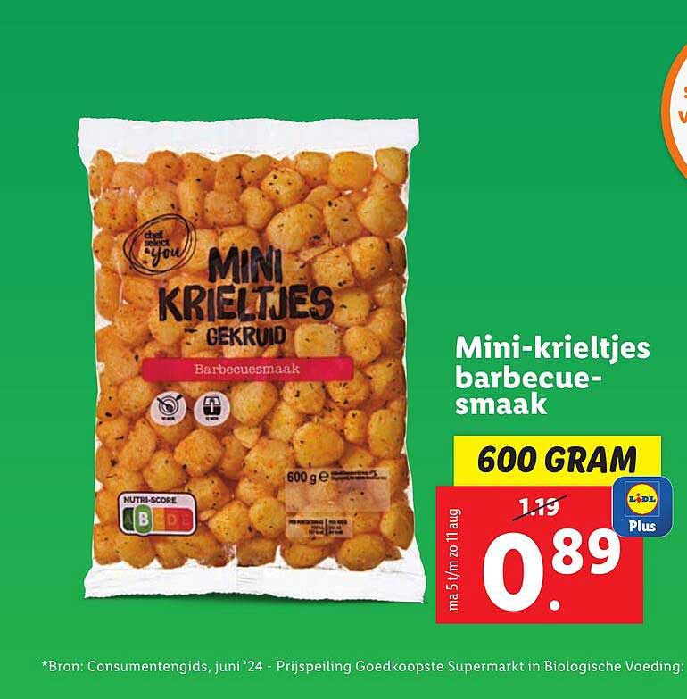 Ontdek de geweldige Mini-Krieltjes Barbecuesmaak aanbieding in de nieuwste Lidl folder. Naast deze aanbieding vind je nog veel meer aantrekkelijke kortingen. Je kunt de Mini-Krieltjes Barbecuesmaak eenvoudig online bestellen via de Lidl website of kopen in een winkel bij jou in de buurt.